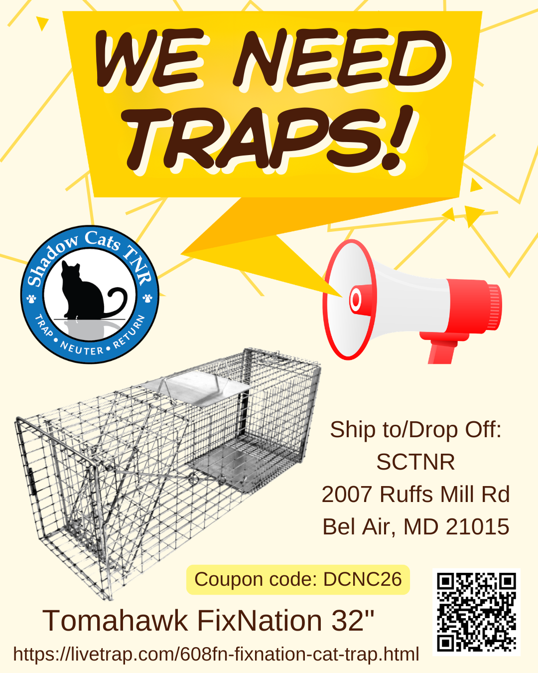 Purchased traps can be shipped to or dropped off at the address below.